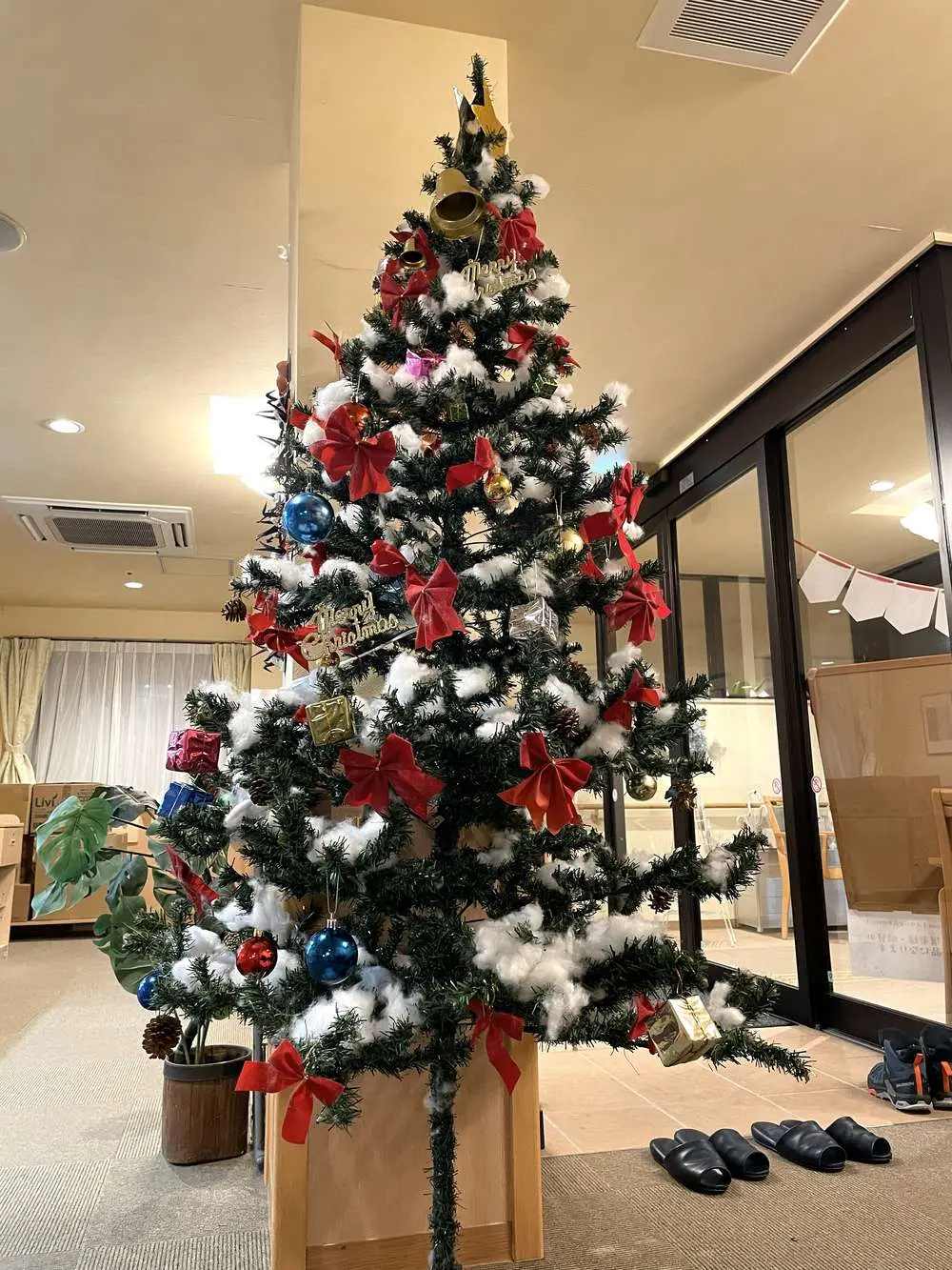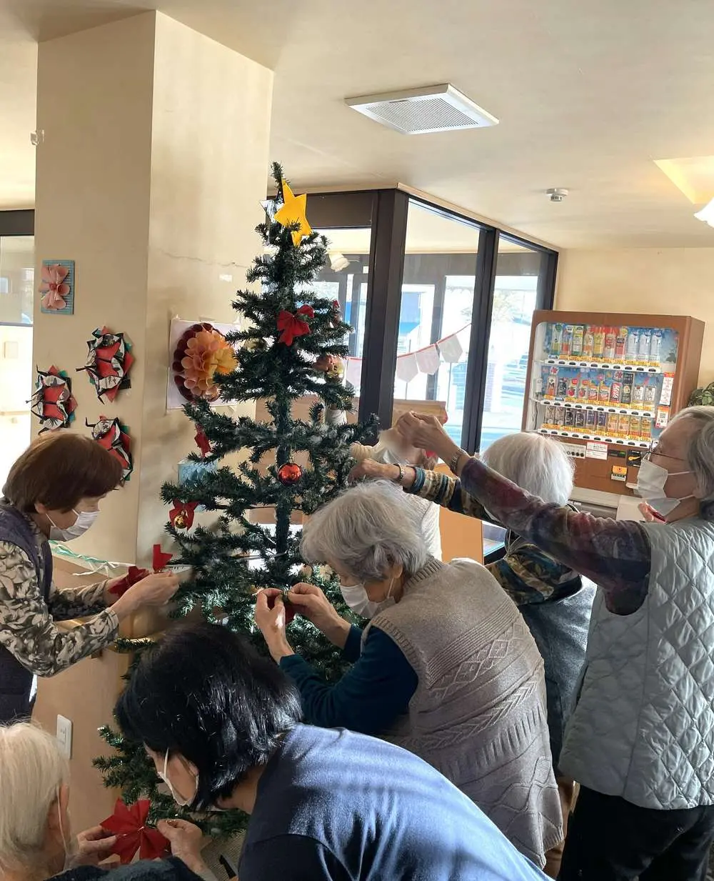 ご入居者様と一緒にクリスマスツリーの飾り付けをしました。
