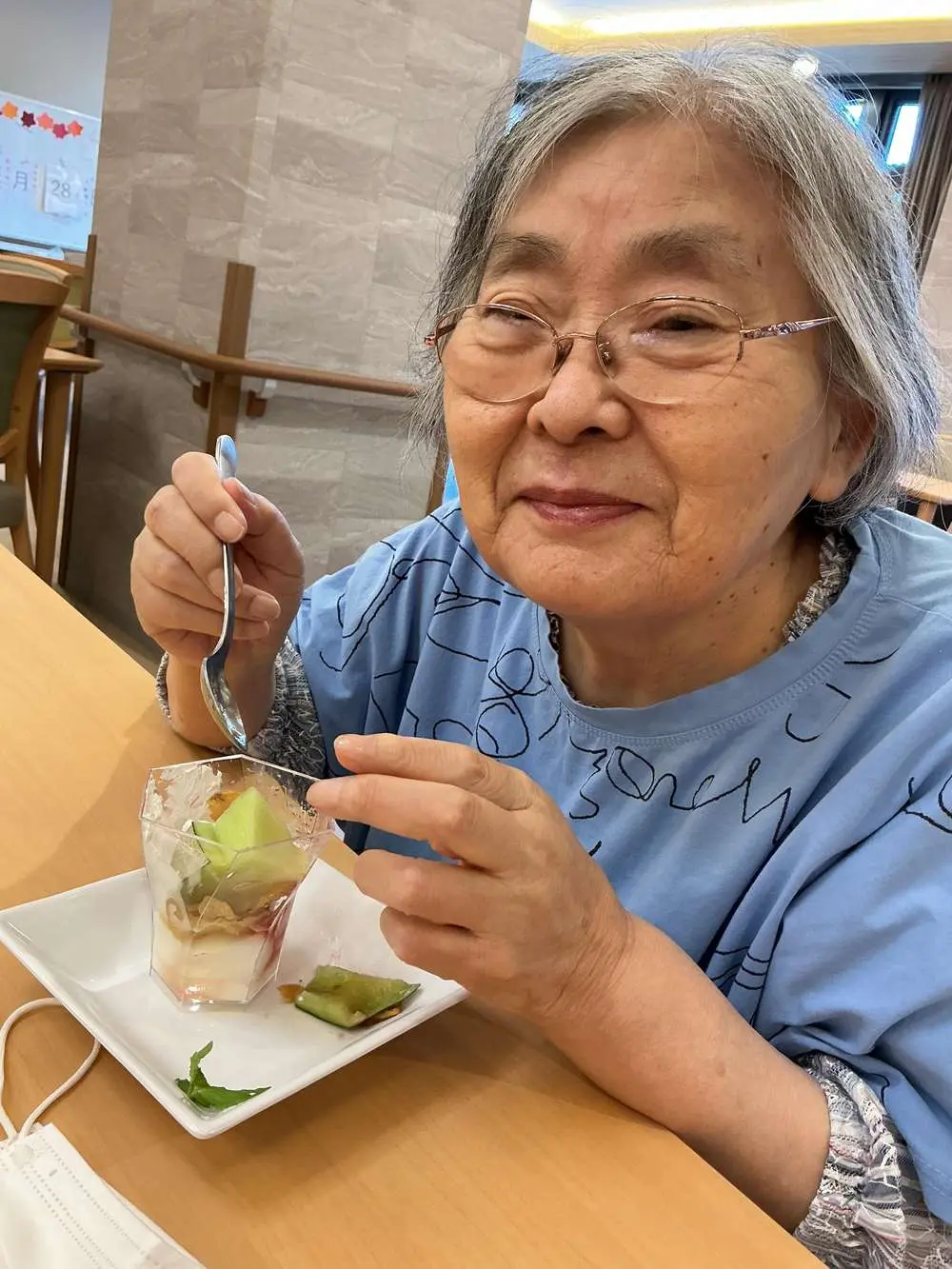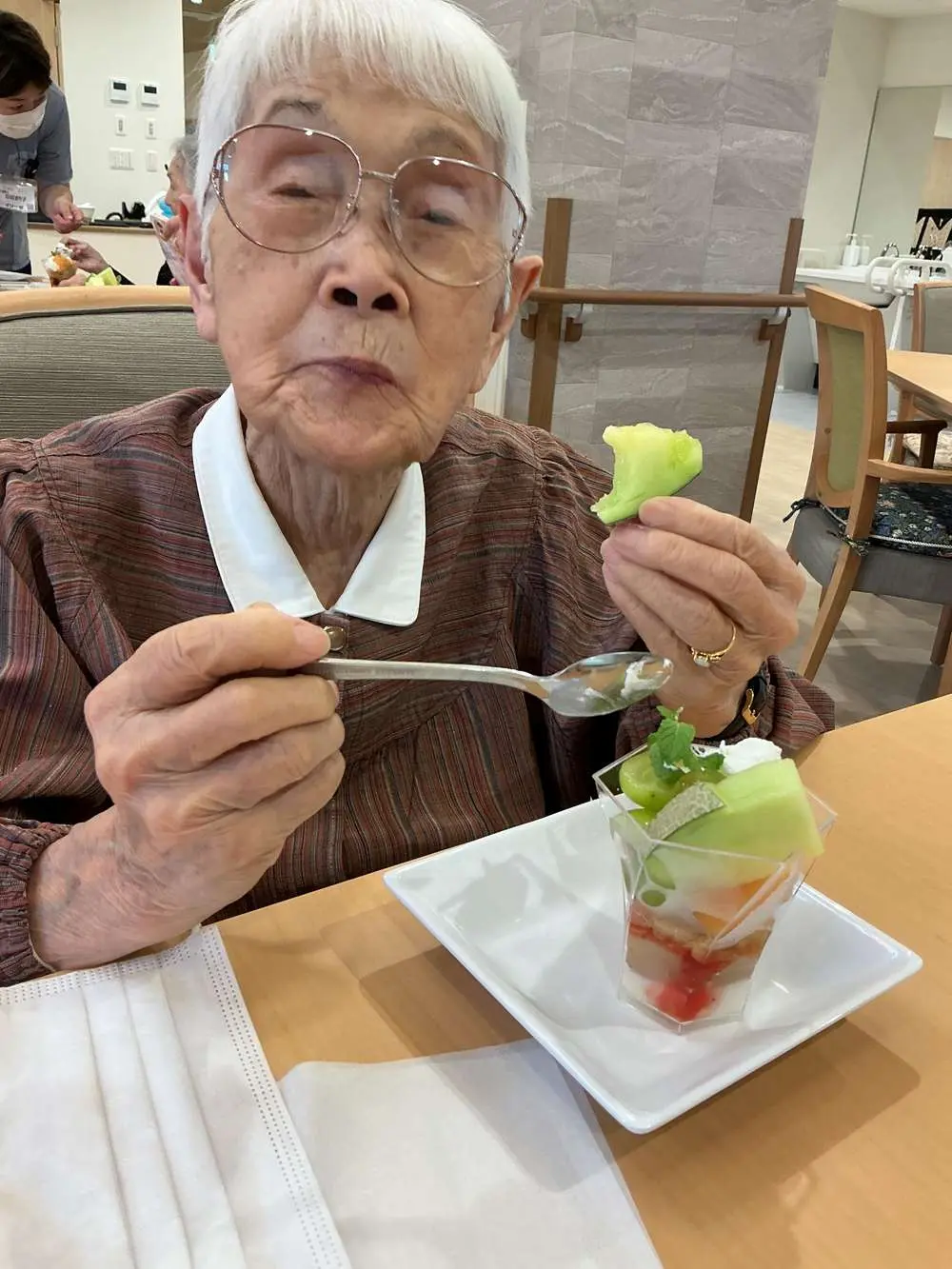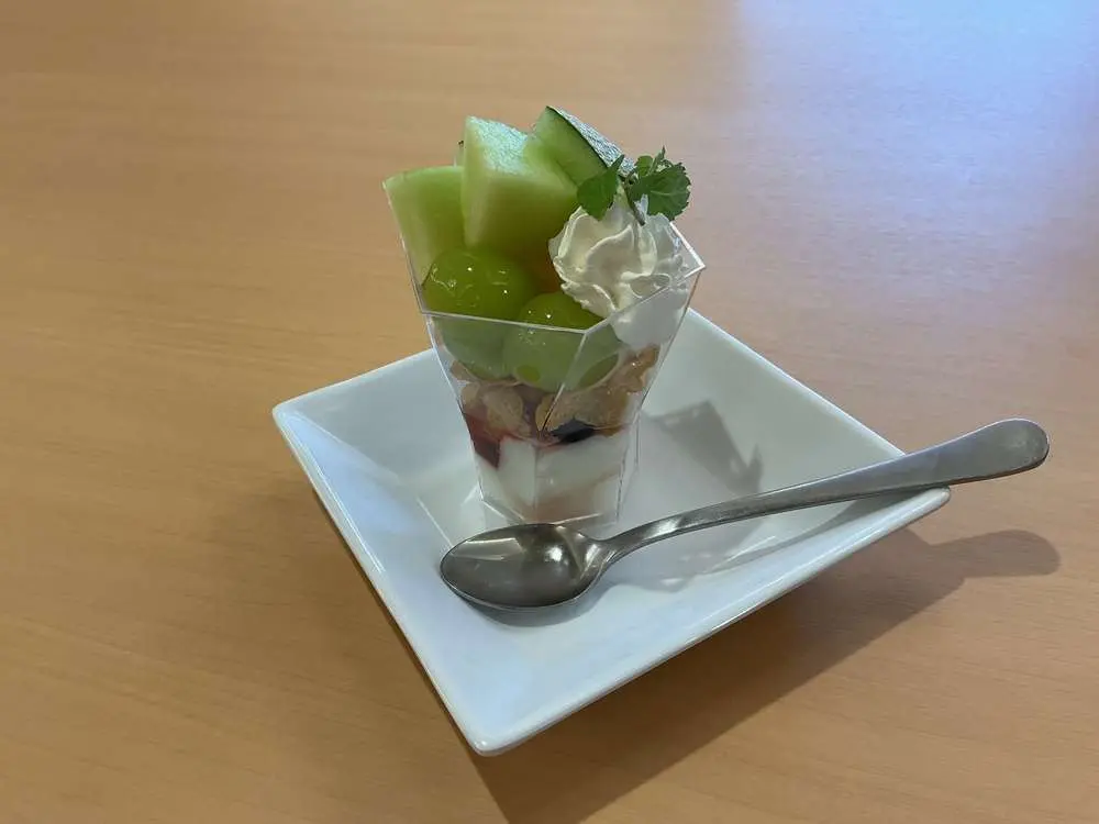 今月のイベント食🍴として、シャインマスカットとメロンのパフェ🍈をご用意しました😆
