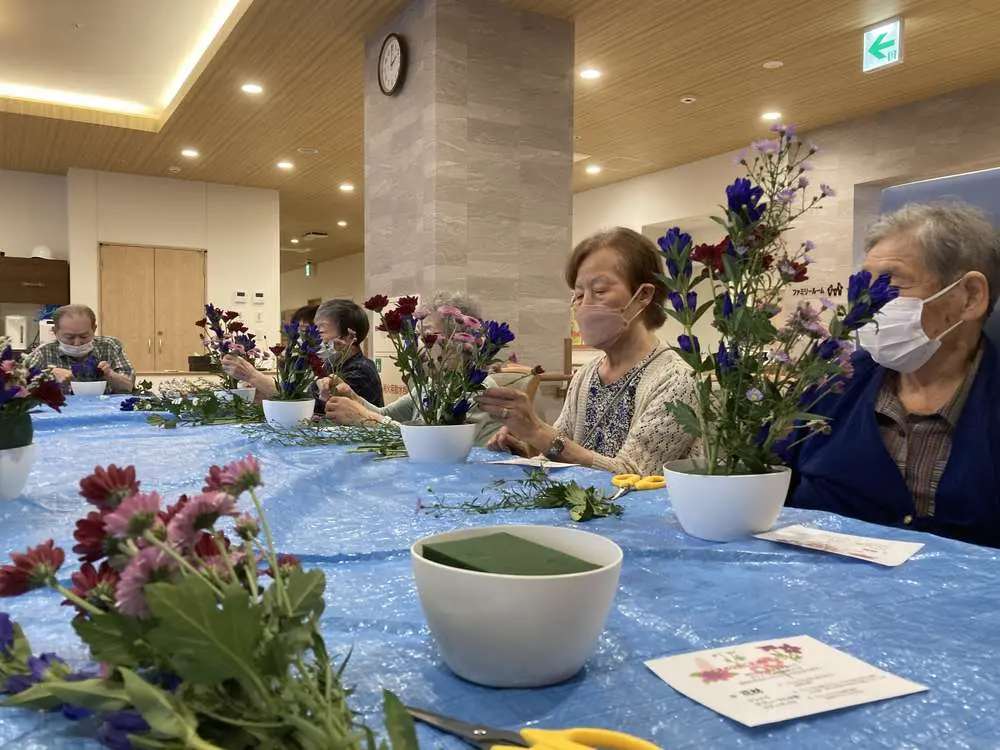 施設の中に季節の彩りが加わることで、入居者様にとって心温まるひとときを過ごしていただけるアレンジメントになりました👏