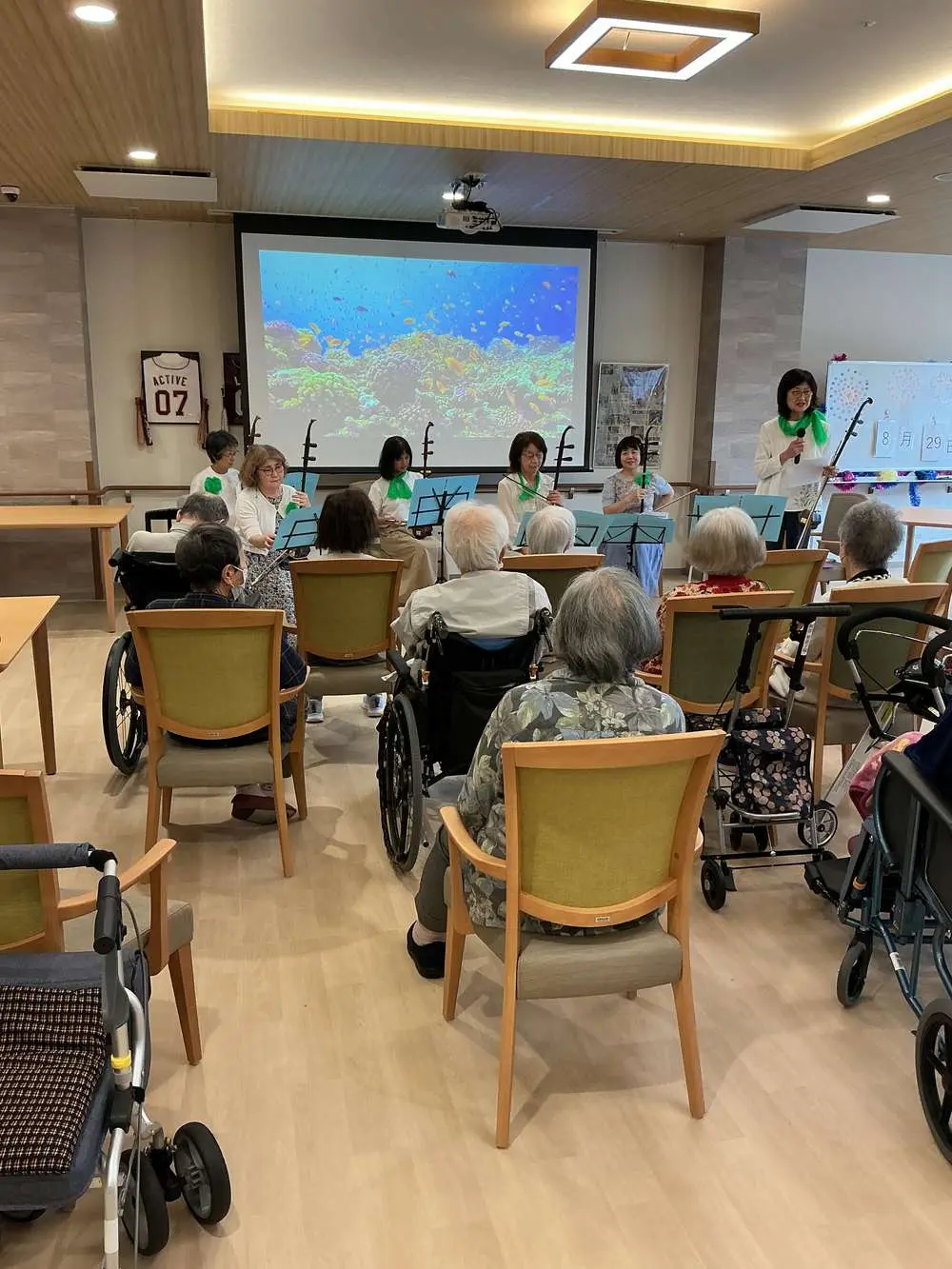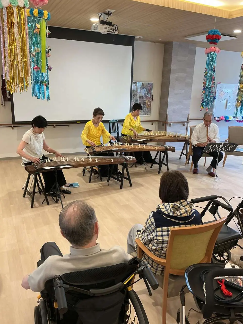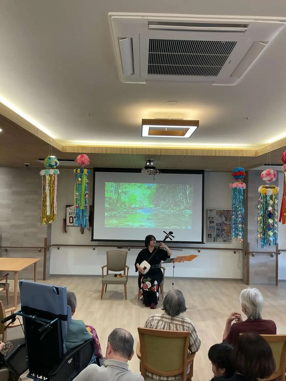 ほとんどの入居者様は初めて二胡の演奏を聞き、最初はどんな音か想像もつきませんでしたが、弦から出るやさしい音色にびっくりしておりました😆