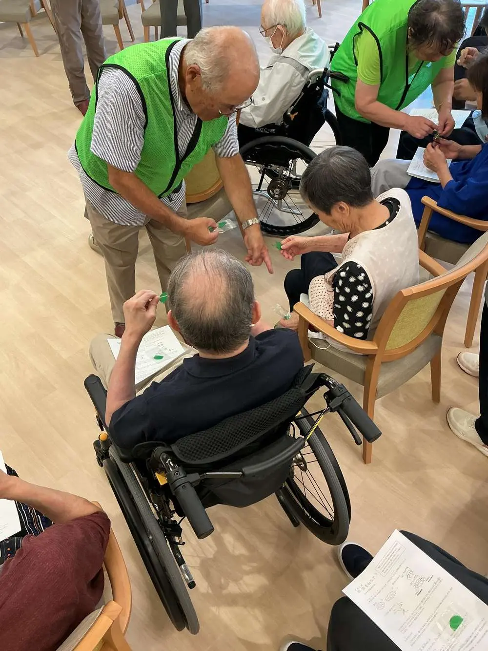 先生が一つひとつの動きを丁寧に説明してくださるので安心感があり、「この動きなら私でも続けられる」と話され身体を動かす入居様😃