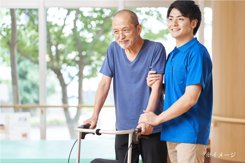 「もう一度散歩に行きたい」などの「やりたい」を叶えるため、理学療法士が生活の場に加わり、歩行や姿勢など、専門的な視点から「安全で心地よい暮らし」を提案しています。現在の身体状況を確認し、週に1~2回、20分程度の時間をかけてお一人おひとりの生活動作を丁寧にサポートします。また、専門的な視点を取り入れた集団体操を週に数回実施。毎日を元気に過ごすための体力を維持できるよう、専門職が関わりながら、多職種が連携して皆様の生活をサポートする体制を整えています。